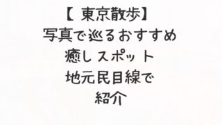 お出かけ 【東京散歩】写真で巡るおすすめ癒しスポット|地元民目線で紹介 東京に暮らしていると、つい見落としてしまいがちな風景があります。ビルの隙間から見える空の色、歴史を感じる建物のたたずまい、静かな境内に差し込む陽の光…。予定も目的もなく、ふと足を向けた先で出会う光景こそが、旅の醍醐味なのかもしれません。今回... お出かけ